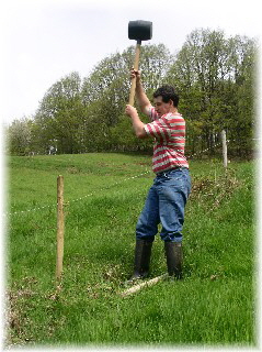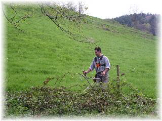 Pfähle und Draht erneuern, freimähen des Zaunes usw.